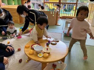 ぞうぐみさんだけで、サル山に向かいました。“いっぱいおるね!”“あかちゃんかわいい~”と夢中になってみていました。