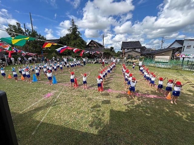 準備体操で、体をたくさん動かしました。体操係の年長さんはりきってみんなの見本になってくれました。