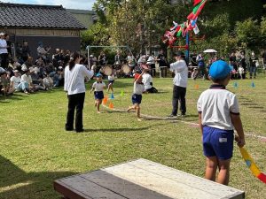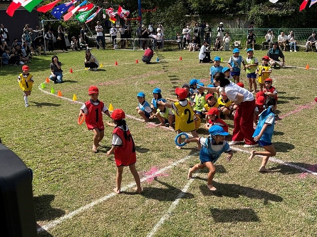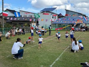 年長さん気合十分のリレー。みんな全力で走り、応援にも力が入りました。