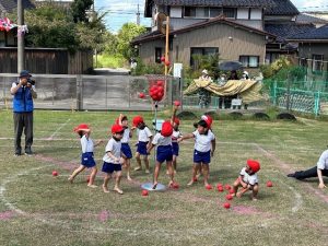 ダンシング玉入れでは、ノリノリで踊り、玉入れを楽しみました。