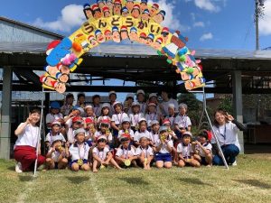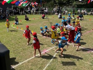 毎年恒例、縦割りクラス対抗戦のぐるぐるハリケーン!大きいお友だちが小さいお友だちをリードして走りました。