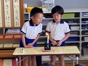 お話のろうそくは、1つだけ願いをかなえてくれる不思議な力を持ち、10月生まれのお友だちが消してくれました。みんなの願いがかなうといいですね。