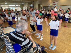 運動会の体操 “がんばれ”のをげんきに踊りました。手拍子しながら見てくださいました。