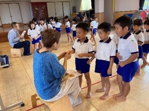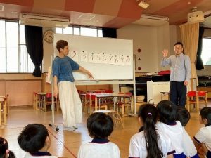 子どもたちは外国の方に興味を持ち、いろいろ質問していました。
