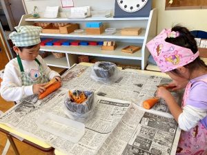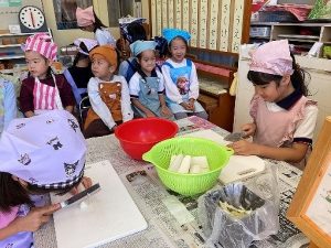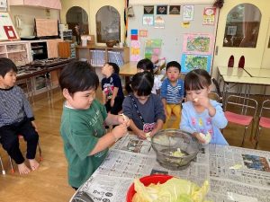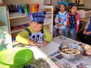 包丁の使い方もじょうずになり、年中さんも野菜切りに挑戦!