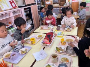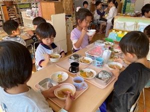 “豚汁おいしい!”“さつまいもあまいね”と、おかわりして食べ、大きな鍋の豚汁はあっという間になくなりました。