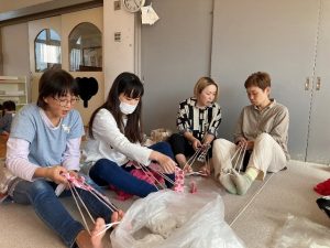 出だしのところがむずかしく、ぞうりの先生がするのを見ながら、編み始めました。