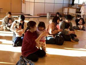 目覚めてきたお子さんと一緒に、ふれあい遊びや歌、パネルシアターなども楽しみました。