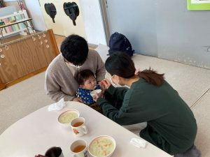 保育園では月齢や一人一人にあわせて離乳食を作っています。写真で紹介しました。