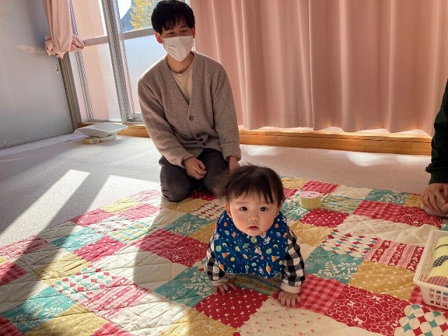 初めて遊びに来てくれた小さいお友だち。動くおもちゃを目で追って遊んでいましたね。