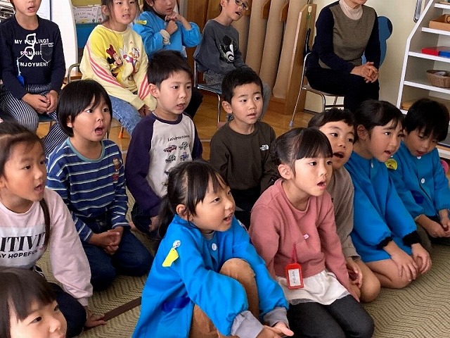 園長先生の“三枚のおふだ” のおはなしは、おにばばが追いかけてくるところから、息をのんでドキドキしながら聞いていました。