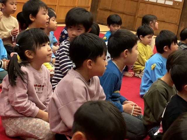園長先生が、親鸞聖人のお話をしてくださり、静かに聞いていました。