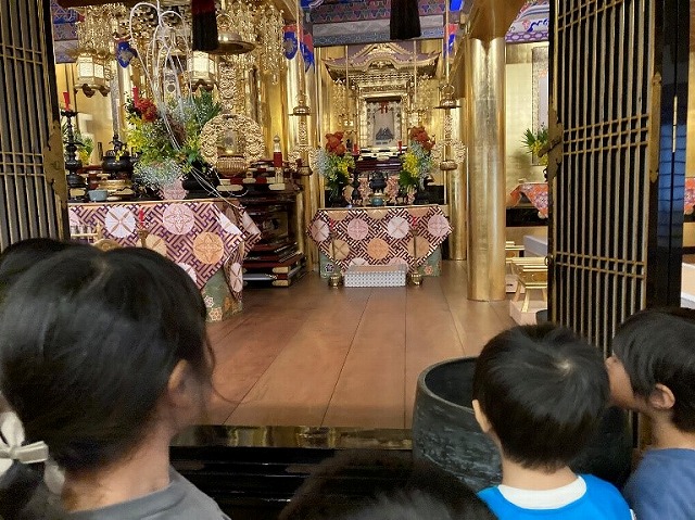 ホールでのお参りとは違い、内陣にはきれいな花が飾られていたり、キラキラ光っていていつもと違う雰囲気でしたね。