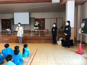 高岡市の地域安全課からセーフティーリーダーさんが来られ、交通安全のお話しを聞きました。