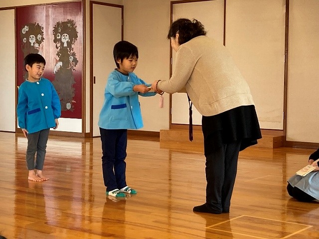 園長先生からカードをいただきました。“ありがとう”と大きな声でお礼を言っていました。