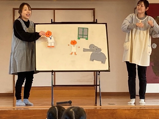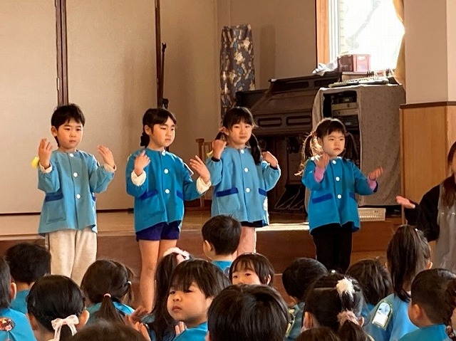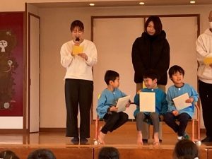 1月生まれのお誕生会があり、司会のお友だちがしっかり進行していました。