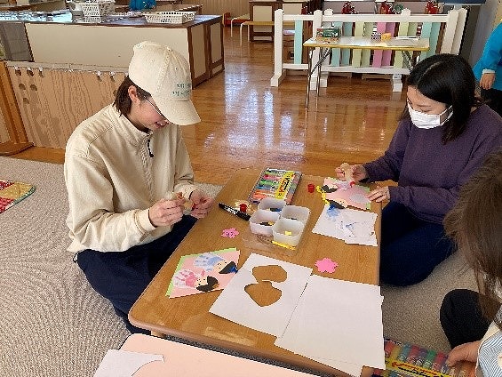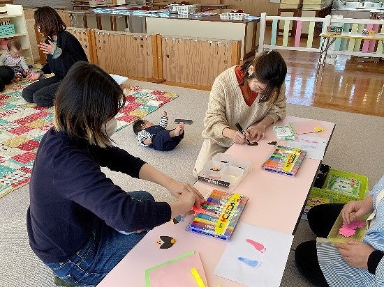 今日は、かわいい手形や足型をスタンプしておひな様作りをしました。