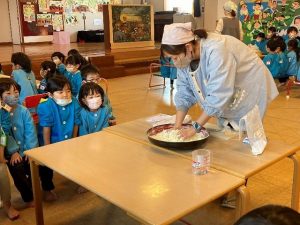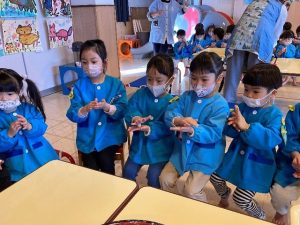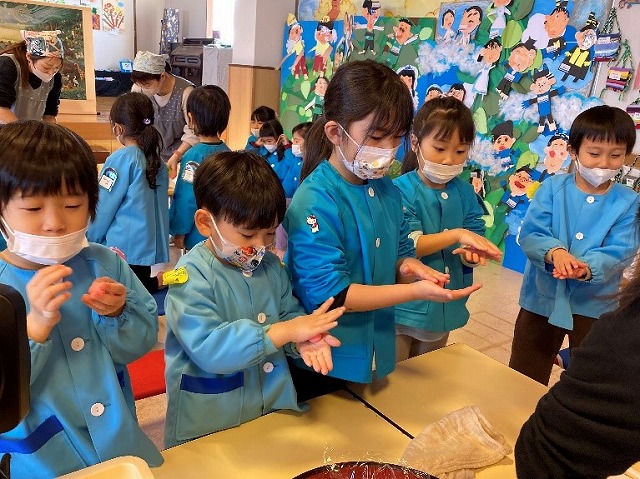 お参りの時のおやくそくをみんなで言いながら、どんどん丸めていきました。