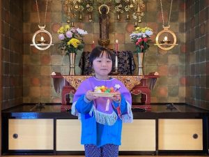 せいろで蒸した団子を、のの様にお供えし、みんなでおまいりをしました。