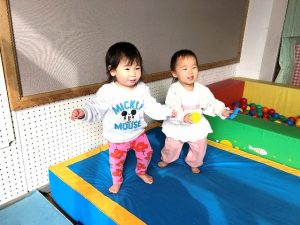 “じゃんぷ!じゃんぷ!”室内でも思いきりからだを動かしています。
