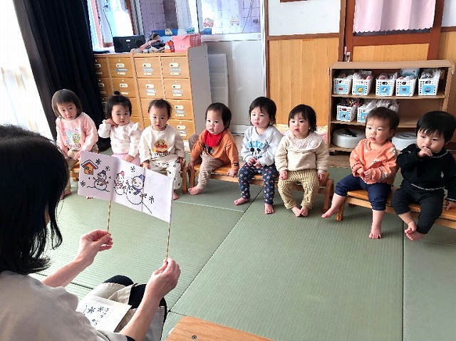 みんなだいすきなあつまりの時間。今日はどんな歌やお話かな?とわくわくしながら見ています。
