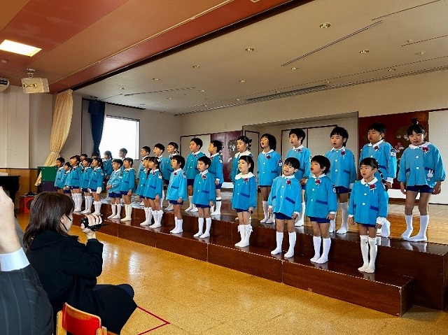 卒園のつどいは、子どもたちの歌声で始まり、1年間を振り返りスライドを見ました。