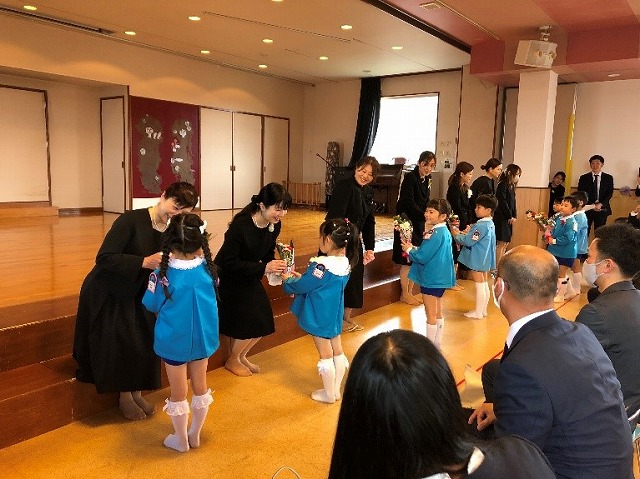 お世話になった先生方にお礼の花束を渡しました。卒園してもずっと応援しています。ご卒園おめでとうございます!