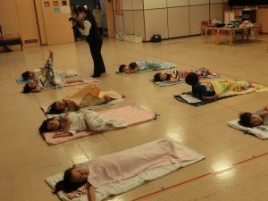 寝る前に集合写真。みんないい顔していますね!お泊り保育を満喫した、子どもたちです‼