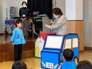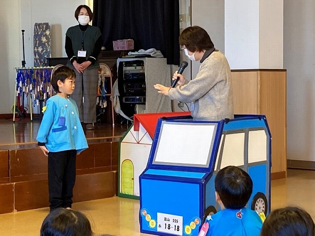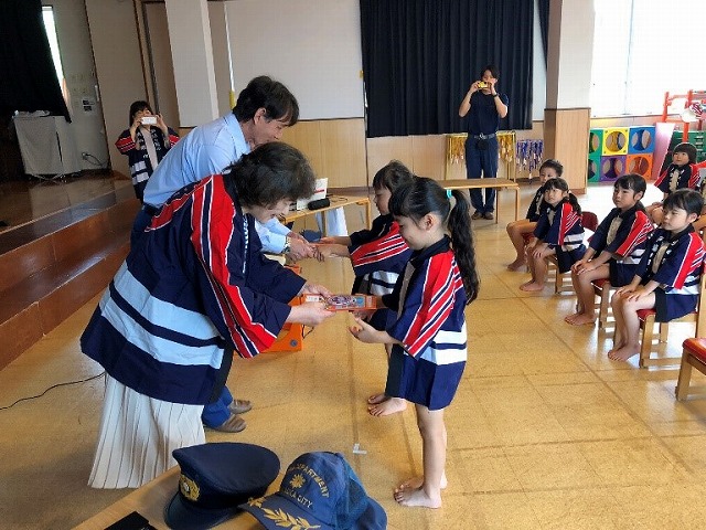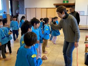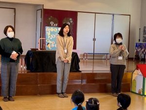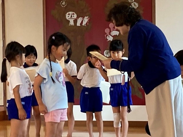 一人ずつ千春先生、副園長先生と“See you”とあいさつをして、楽しかった“英語であそぼう”の時間は終わりました。
