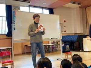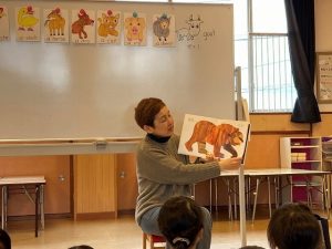 いろんな動物の名前と、英語での鳴き声を教えてもらいました。日本とはちがう鳴き声に、驚きながらもまねて遊びました。