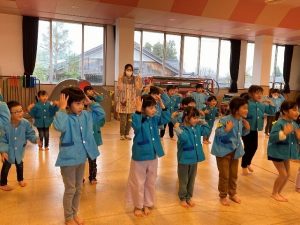 年少さんの歌と合奏では、手振りをしながら歌をうたっていました。